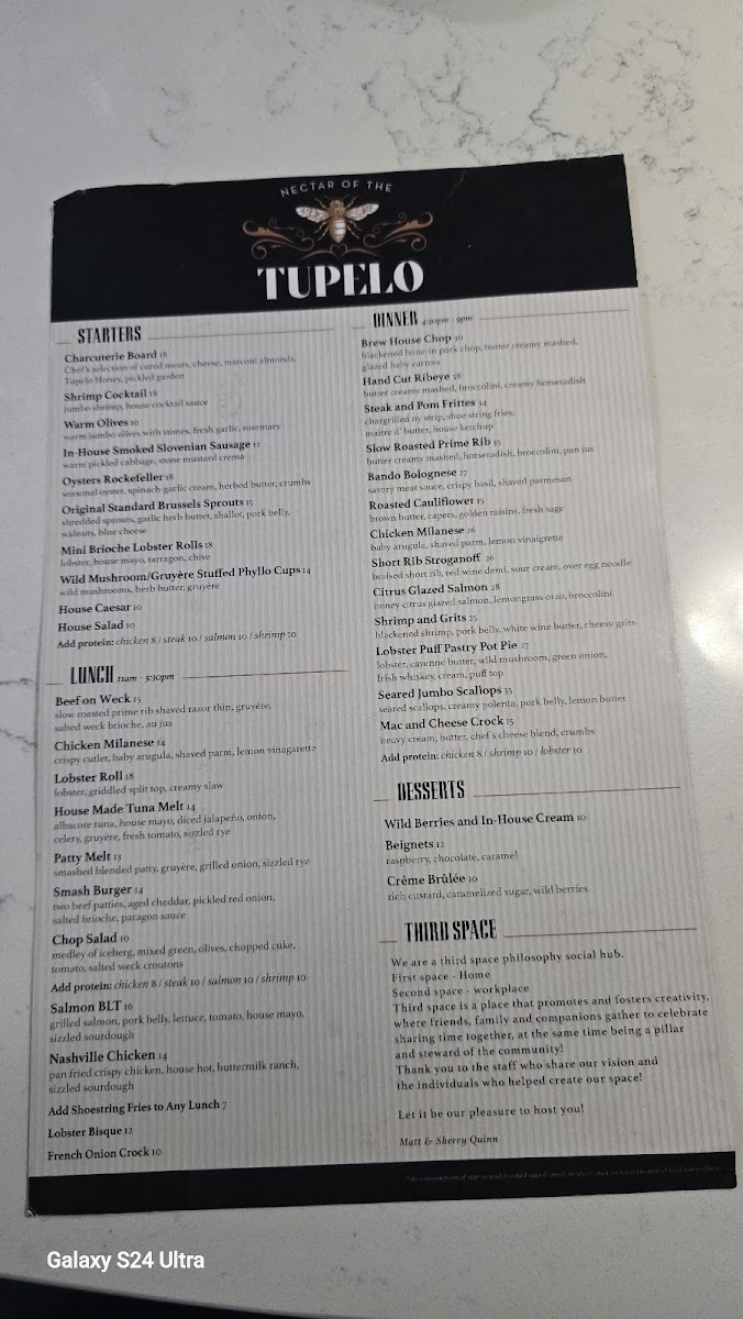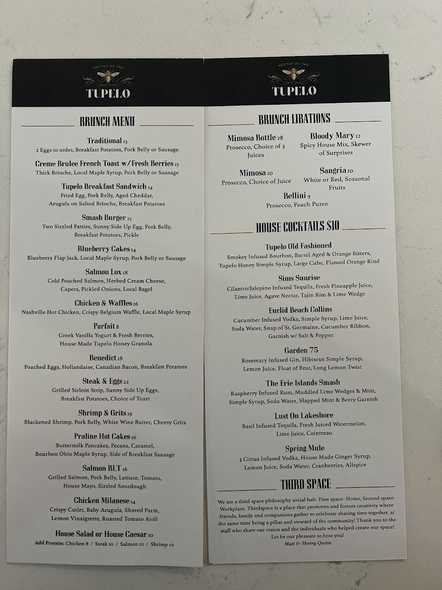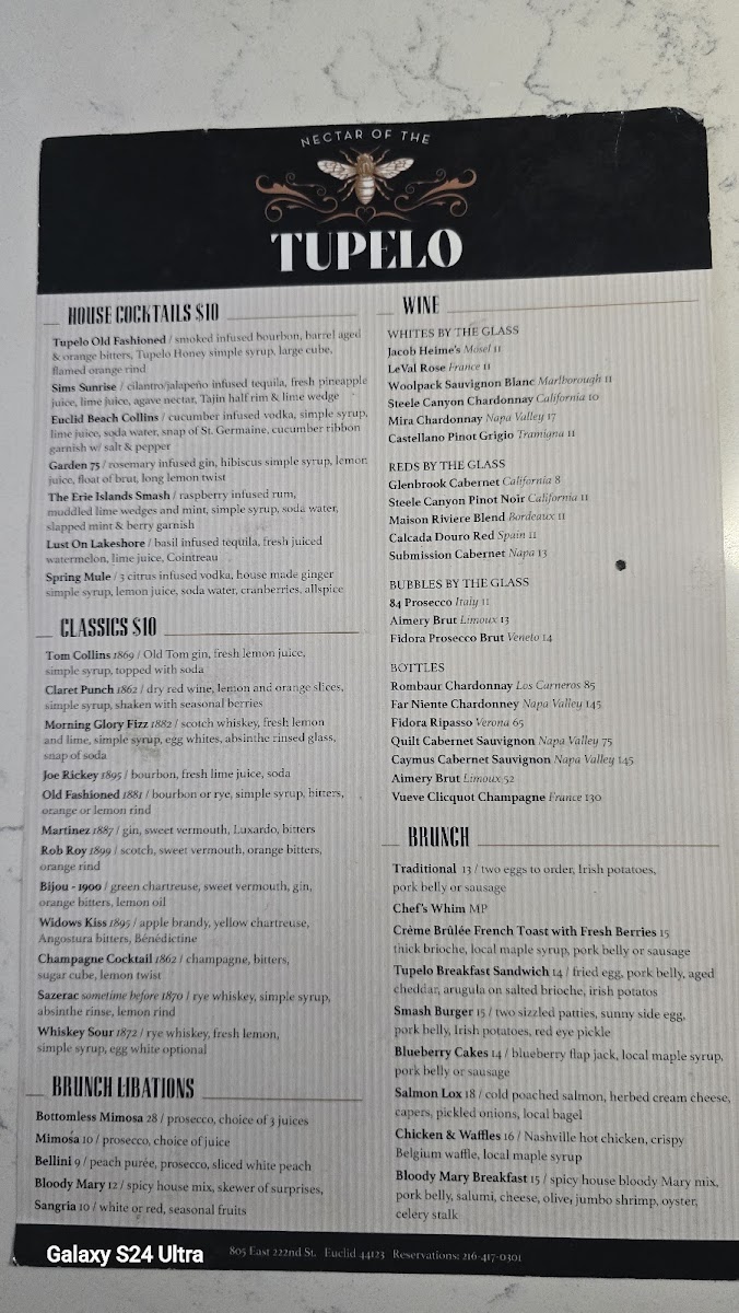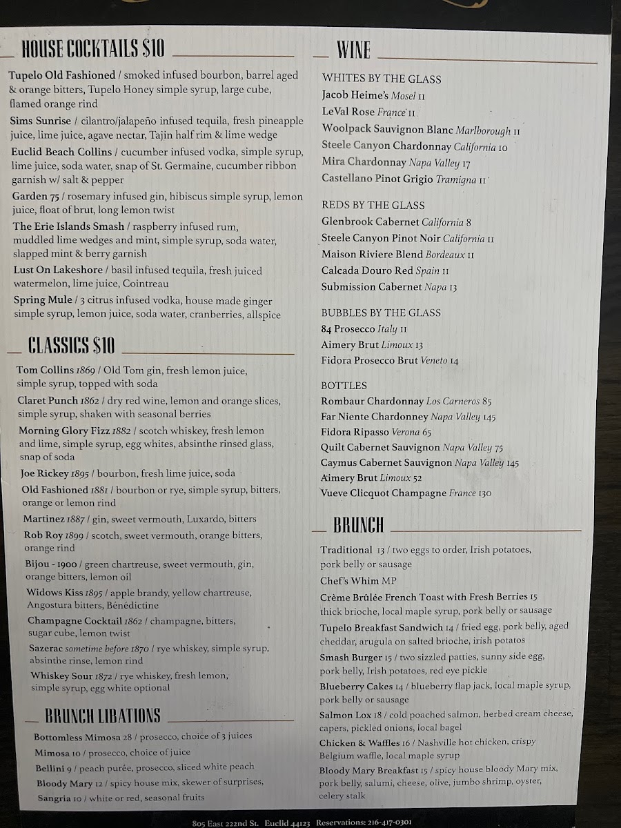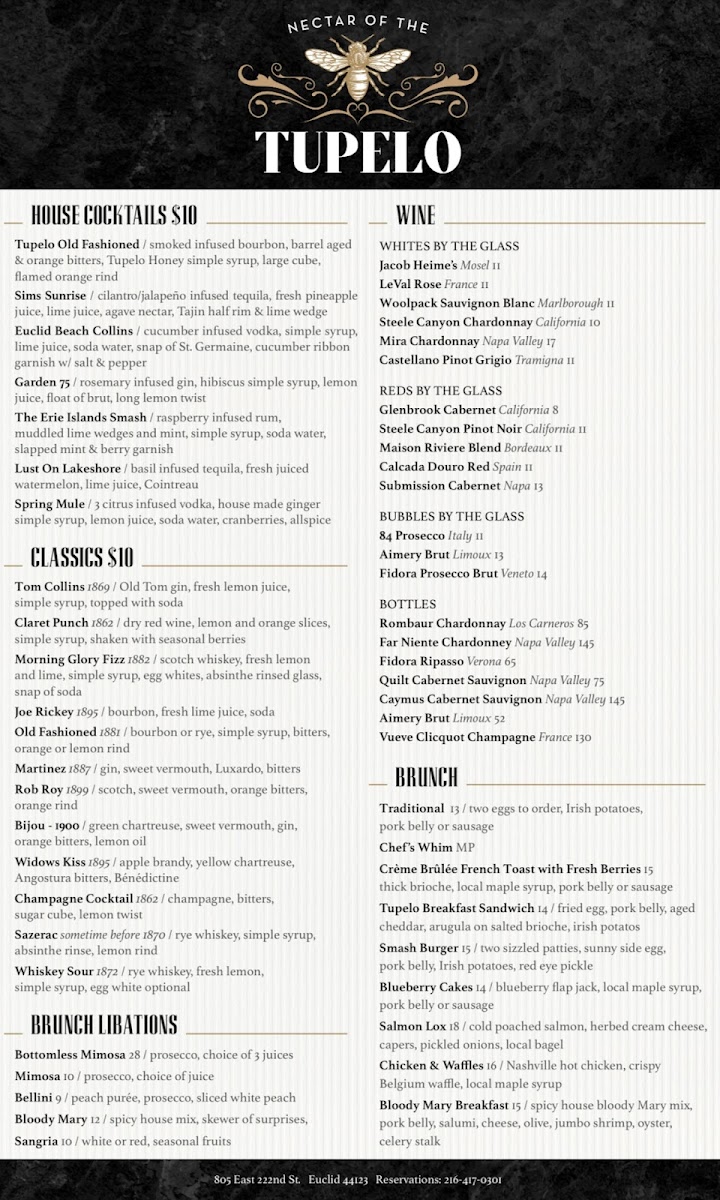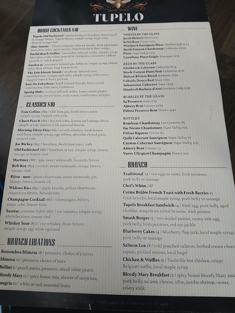 Welcome to Nectar of the Tupelo Euclid, a hidden gem nestled in the heart of Euclid, Ohio. This delightful restaurant, located at 805 E 222nd St, captivates diners with its vibrant atmosphere and a menu brimming with mouthwatering options. From the innovative Tupelo Old Fashioned cocktail to the comforting Crème Brûlée French Toast, every item is crafted to perfection. Patrons rave about the Smash Burger and Chicken & Waffles, highlighting the quality of ingredients and skillful preparation. Notably, the outdoor patio offers a lovely dining experience, ideal for warm summer evenings. Guests have praised the attentive service and warm hospitality, making it a favorite spot for brunch after Sunday Mass. With impressive choices like the Mushroom Gruyère philo appetizer and exceptional seafood, Nectar of the Tupelo Euclid promises an extraordinary dining experience that leaves you wanting more.